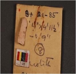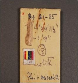 | Description / विवरण | Broken chert blade with mid ridge on dorsal side, striking platform on proximal end with bulb on ventral side, distal end broken and use wear marks on both working edges. |