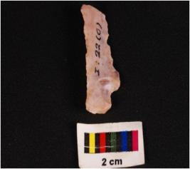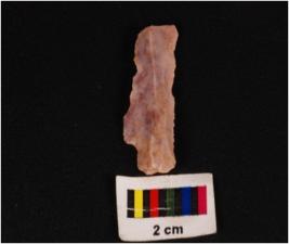 | Description / विवरण | Parallel sided blade with two riges on dorsal side, it has diffused bulb on proximal side and use were marks on cutting edge. |