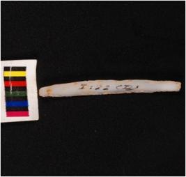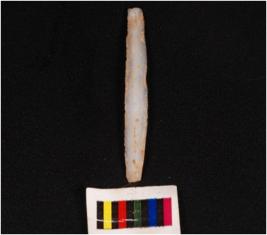 | Description / विवरण | Parallel sided microlith blade with prominent mid-ridge and triangular in section. Use wear marks on cutting edges. |