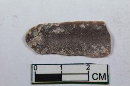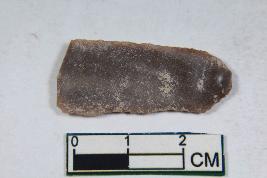 | Description / विवरण | A fragment of a blade having two dorsal ridges with bulb of percussion. It has smooth surface. |