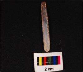 | Description / विवरण | Parallel sided blade with two riges on dorsal side, use were marks on cutting edges, it has diffused bulb and trapezoid section. |