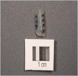 | Description / विवरण | Chalcedony fragmnet of parallel sided blade with a single mid ridge, triangular section. |