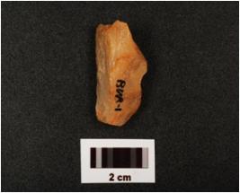 | Description / विवरण | A core made on quartz with prepared platform, diffused bulb on ventral side, four flake scars, use wear marks along cutting edges, |