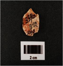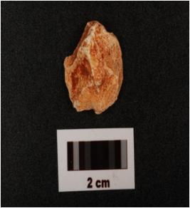 | Description / विवरण | A flake made on chert with prepared platform, diffused bulb on ventral side, flake scars on dorsal side, use wear marks along cutting edges, |
