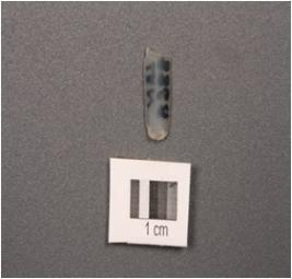 | Description / विवरण | Chalcedony parallel sided blade with a double ridge, prominent bulb on ventral side, ripple mark on ventral side, trapezoidal section |