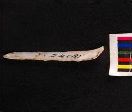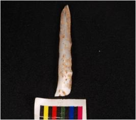 | Description / विवरण | Parallel sided blade with a mid ridge on dorsal side, diffused bulb on ventral side and use-wear marks on edges. |