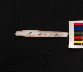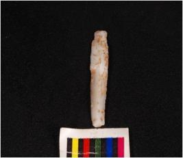 | Description / विवरण | Parallel sided microlithic blade with a prominent mid ridge on dorsal side, triangular in section, diffused bulb on ventral side and broken at distal end. |