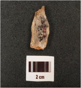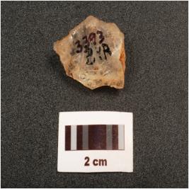 | Description / विवरण | A quartz flake with flake scars on dorsal, use wear marks on edge and translucent, |