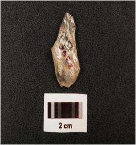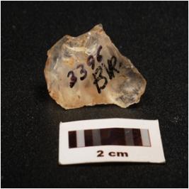 | Description / विवरण | A quartz flake with flake scars on dorsal, ripple marks on ventral and use wear marks on edge, |