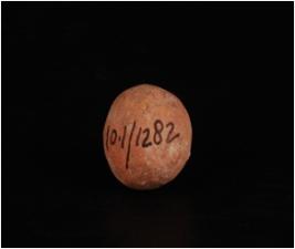 | Description / विवरण | Terracotta sling ball, round in shape, smooth surface and wash treatment given in red colour. |