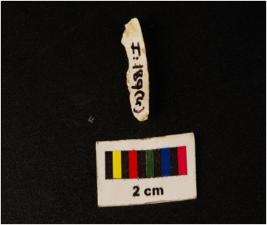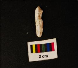 | Description / विवरण | A microlithic point with a mid ridge on dorsal side, broken at distal end, diffused bulb on ventral side, triangular in section and partly cortex visible on left dorsal side. |
