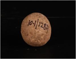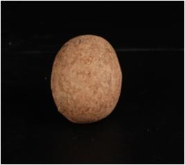 | Description / विवरण | Terracotta sling ball, round in shape, smooth surface and slip treatment given in buff colour. |