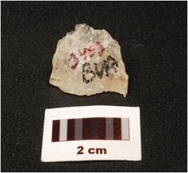 | Description / विवरण | A quartz blade with prominent mid ridge on dorsal, triangular section, diffused bulb on ventral, use wear marks on cutting edge and broken along distal end, |