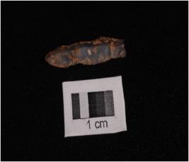 | Description / विवरण | Parallel sided microlith blade with use were marks on cutting edges, prominent mid-ridge on dorsal side, prominent bulb on proximal end. It has triangular section. |