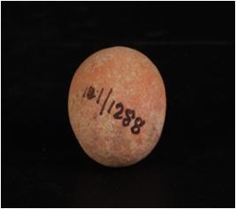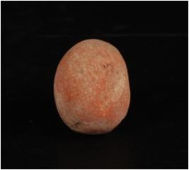 | Description / विवरण | Terracotta sling ball, round in shape, rough surface and wash treatment given in red colour. |
