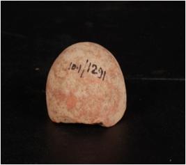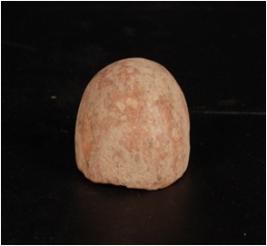 | Description / विवरण | Terracotta sling ball. Round in shape, smooth surface and wash treatment given in red colour. Broken from half. |
