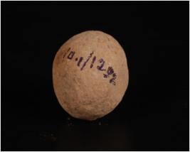 | Description / विवरण | Terracotta sling ball, round in shape, rough surface and wash treatment given in buff colour. |