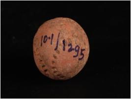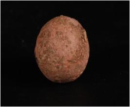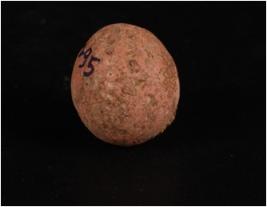| Description / विवरण | Terracotta sling ball, round in shape, smooth surface surface given wash treatment in red colour and decorated with pin hole design. |