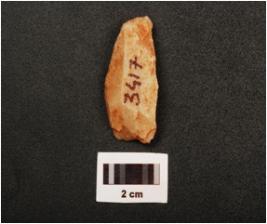 | Description / विवरण | A quartz flake with striking platform, diffused bulb on ventral side and use wear marks on edges, |