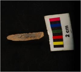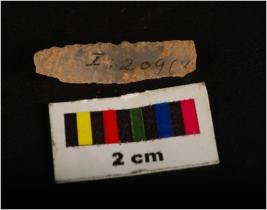 | Description / विवरण | Parallel sided blade, made up of chalecedony mid ridge on dorsal ventral is rough with diffuse bulb and wear marks on edges. |
