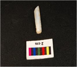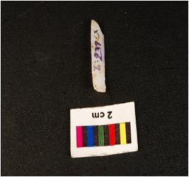 | Description / विवरण | Parallel side microlithic blade, double ridge on dorsal side, trapezoidal in section, ventral is smooth, broken distal end diffused bulb on ventral. |