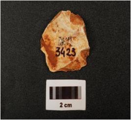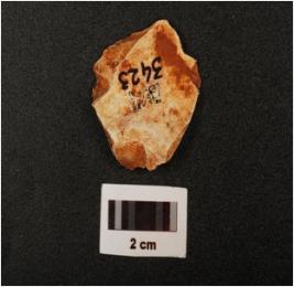 | Description / विवरण | A chert flake with striking platform , diffused bulb on ventral side, and cortex visible on dorsal side, |