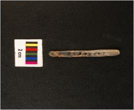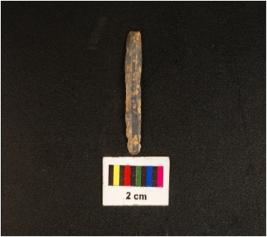 | Description / विवरण | Parallel sided microlithic blade with use wear marks on cutting edges and double ridge on dorsal. |