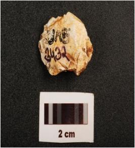 | Description / विवरण | A flake made on chert stone, prepared platform, smooth surface, |