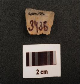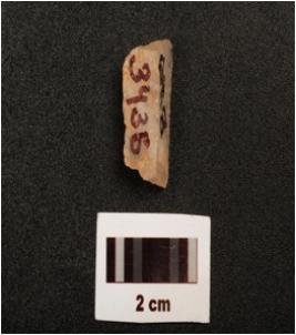 | Description / विवरण | Fragment of a blunted blade, flake scars on surface, broken along proximal end, intact distal end, use wear marks along the working edge, |