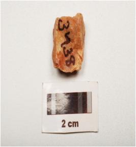 | Description / विवरण | Fragment of a blunted blade, flake scars on surface, borken along proximal end intact distal end, use wear marks along the working edge, |