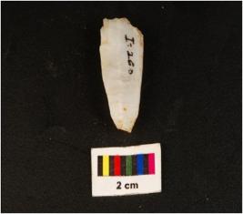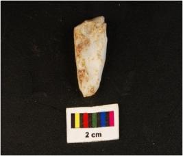 | Description / विवरण | Core with three blade scars, prepared platform proximal and distal end intact. |