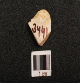 | Description / विवरण | Fragment of a blunted blade, flake scars on dorsal side, use wear marks along with working edge, |
