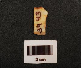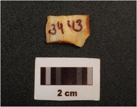 | Description / विवरण | Fragment of a blunted blade, made with chert, use wear marks on working edge, smooth ventral surface, |