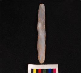 | Description / विवरण | Parallel sided blade with irregular retouches on right dorsal side and diffused bulb on ventral side. |