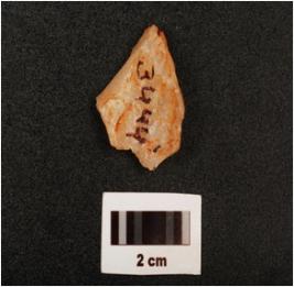 | Description / विवरण | A flake made on quartz stone, flake scars on dorsal side, use wear marks on working edge, |