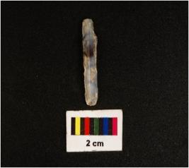 | Description / विवरण | Parallel sided microlithic blade with use wear marks on cutting edges and double ridge on dorsal. Trapezoid in section. |