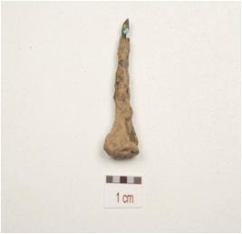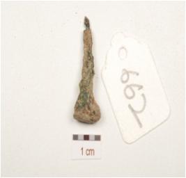 | Description / विवरण | A copper nail, pointed at one end and circular head, |