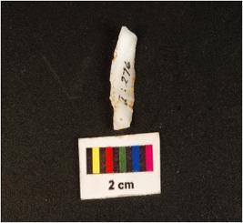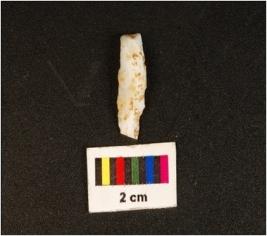 | Description / विवरण | Microlithic blade with use wear marks on cutting edges and mid ridge on dorsal. Triangular in section. |