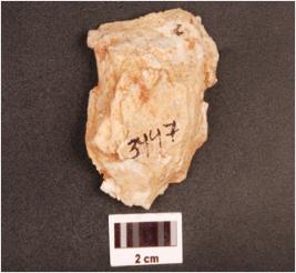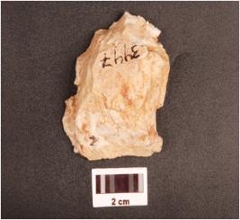 | Description / विवरण | Chert flake with prepared platform and prominent bulb. |