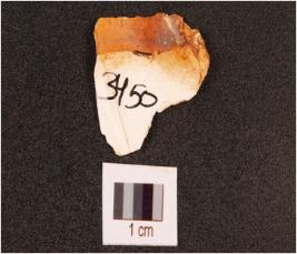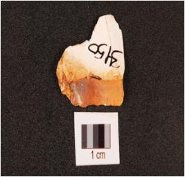 | Description / विवरण | A chert blade, prepared platform, prominent bulb on ventral side, ridge on dorsal side, triangular cross section, user marks along the cutting ends, and distal end broken. |