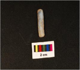 | Description / विवरण | Parallel sided microlithic blade with double ridge on dorsal. Trapezoid in section and use wear marks on cutting edges. |