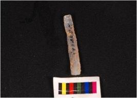 | Description / विवरण | Parallel sided microlith blade with double ridge on dorsal and use wear marks on cutting edges. Trapesoid in section. |