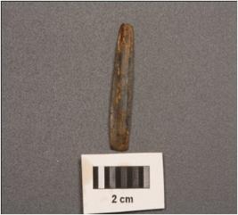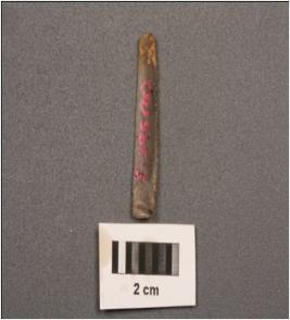 | Description / विवरण | A parallel sided blade with use-wear marks on cutting edges, prominent mid-ridge on dorsal side, diffused bulb on ventral side, triangular in section. |
