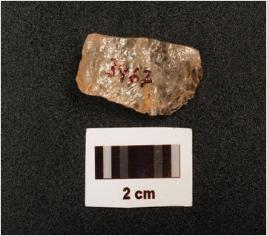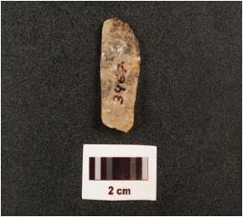 | Description / विवरण | A quartz flake with flake scars on dorsal and use wear marks on edges, |
