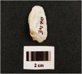| Description / विवरण | A agate end struck flake with striking platform, diffused bulb on ventral flake scars and cortex on dorsal use wear marks on edges, |