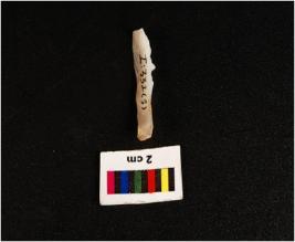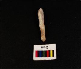 | Description / विवरण | Parallel sided blade with prominent wavy mid ridge on dorsal side, triangular in section, broken at distal end, diffused bulb on ventral side, use wear mark along the cutting edges. |