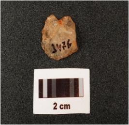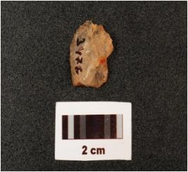 | Description / विवरण | A quartz end struck flake with flake scars on dorsal, prepared platform and use wear marks on edges, |