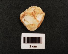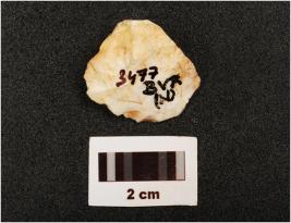 | Description / विवरण | A chert core with flake scars and three blade scars on surface, use wear marks on edges, |