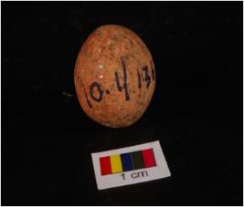 | Description / विवरण | Terracotta circular in shaped sling ball with smooth surface and surface treated with wash in red colour. |