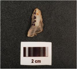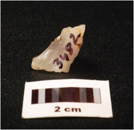| Description / विवरण | A quartz flake with flake scars on dorsal and use wear marks on edges, |